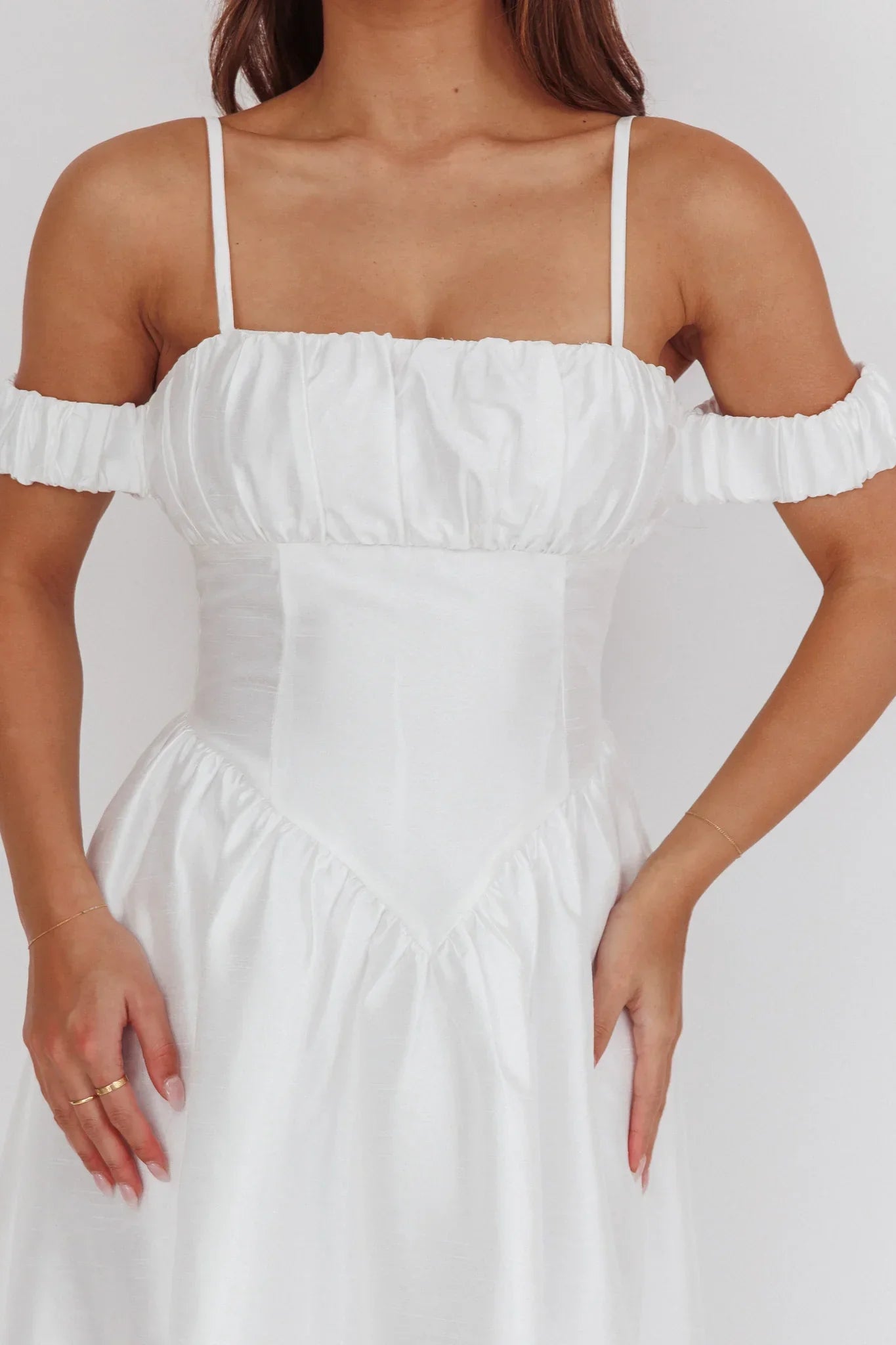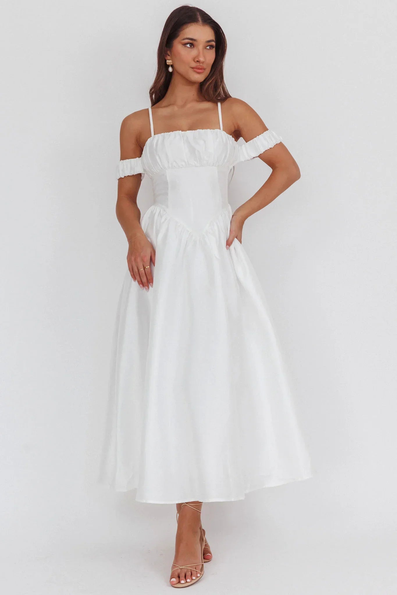 Float through your day in our gorgeous Heavens Above midi dress. It features a chic, basque waist and off-shoulder design and is perfect for a bridal shower or a glam event. Team it with kitten heels and a clutch for a look that will turn heads.